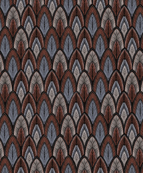 Jemně plastická vliesová tapeta na zeď, černý podklad, motiv listů v odstínech hnědé/terakota, šedo-béžové a pololesklé modré. Foto je pouze ilustrační - odlišné barvy.