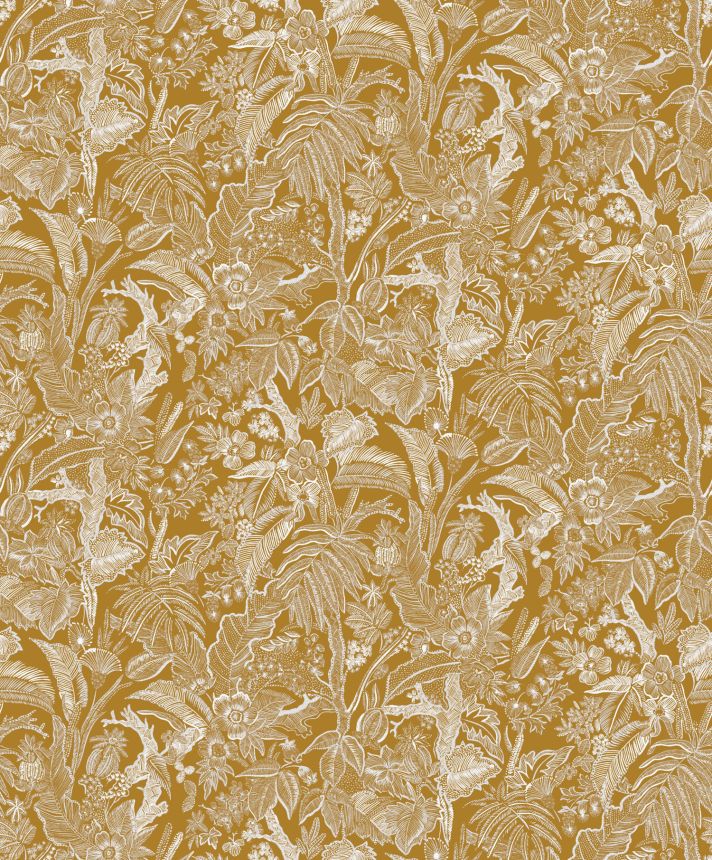 Okrová vliesová tapeta s květinami a listy, SUM502, Summer, Khroma by Masureel