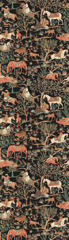 Vliesová obrazová tapeta na zeď, motiv přírody, koní a jiných zvířat. Hrubá látková textura. Pro větší šířku lze kombinovat s tapetou DGSUM1022 - viz foto. Foto interiéru je pouze ilustrační - odlišné barvy.