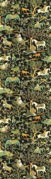 Vliesová obrazová tapeta na zeď, motiv přírody, koní a jiných zvířat. Hrubá látková textura. Pro větší šířku lze kombinovat s tapetou DGSUM1031 - viz foto. Foto interiéru je pouze ilustrační - odlišné barvy.