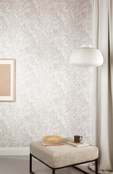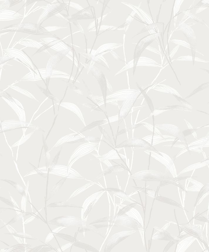 Šedo-bílá vliesová tapeta s listy, ZEN101, Zen, Zoom by Masureel