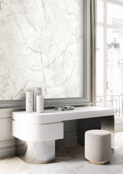 Vliesová obrazová tapeta na zeď, bílo-šedá imitace mramoru. Pro větší šířku lze kombinovat s fototapetou DG3CAR1012- viz foto