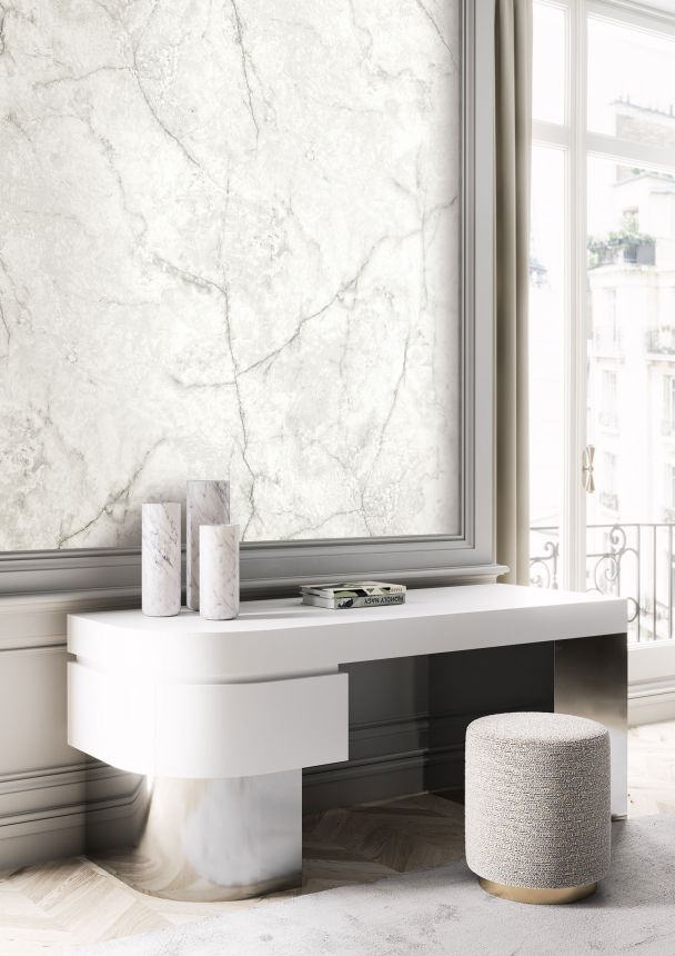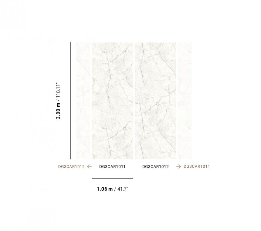 Vliesová obrazová tapeta na zeď, bílo-šedá imitace mramoru. Pro větší šířku lze kombinovat s fototapetou DG3CAR1011- viz foto