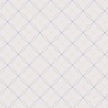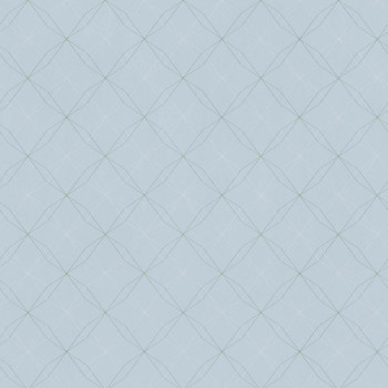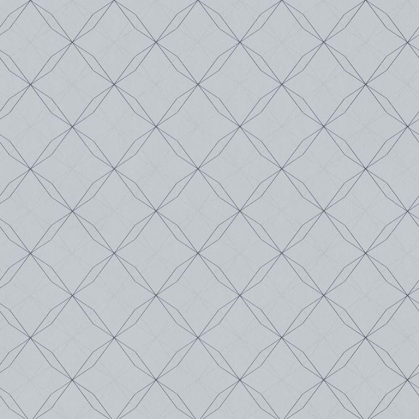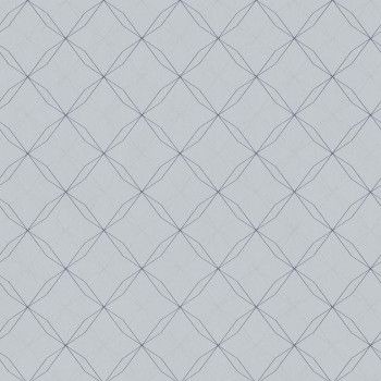 Vliesová, šedo-modrá tapeta. Tmavě modrý a stříbrný geometrický vzor.