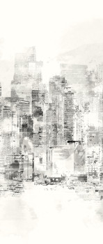 Šedá vliesová obrazová tapeta s motivem města. Foto interiéru je pouze ilustrační - odlišné barvy. Pro větší šířku lze kombinovat s fototapetou DG3CIT1011- viz foto