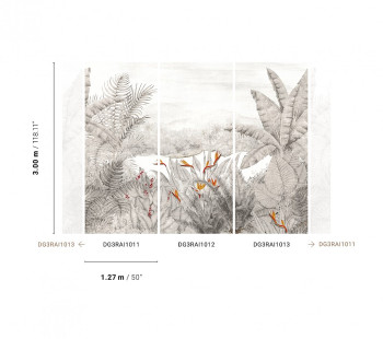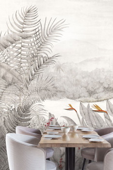 Vliesová obrazová tapeta s motivem tropického lesa a palem. Foto interiéru je pouze ilustrační Pro větší šířku lze kombinovat s fototapetami DG33RAI1011 a DG3RAI1013 - viz foto