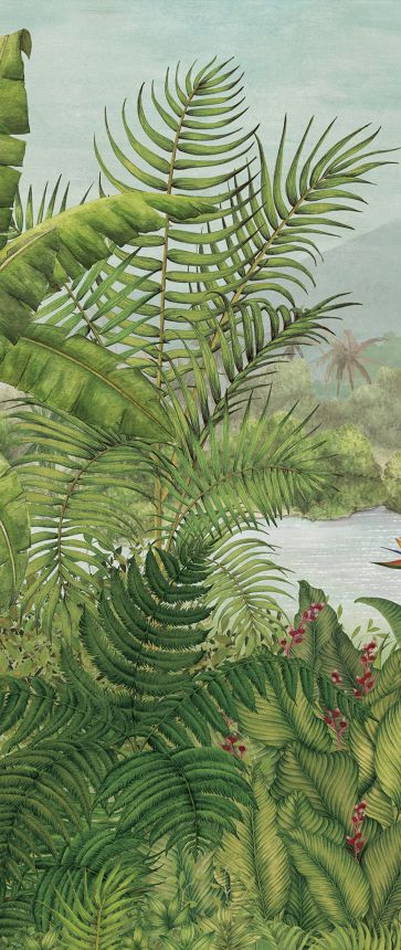 Vliesová obrazová tapeta s motivem tropického lesa a palem. Foto interiéru je pouze ilustrační Pro větší šířku lze kombinovat s fototapetami DG33RAI1032 a DG3RAI1033 - viz foto