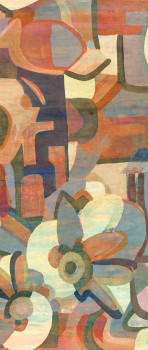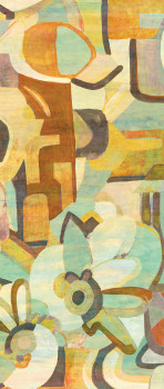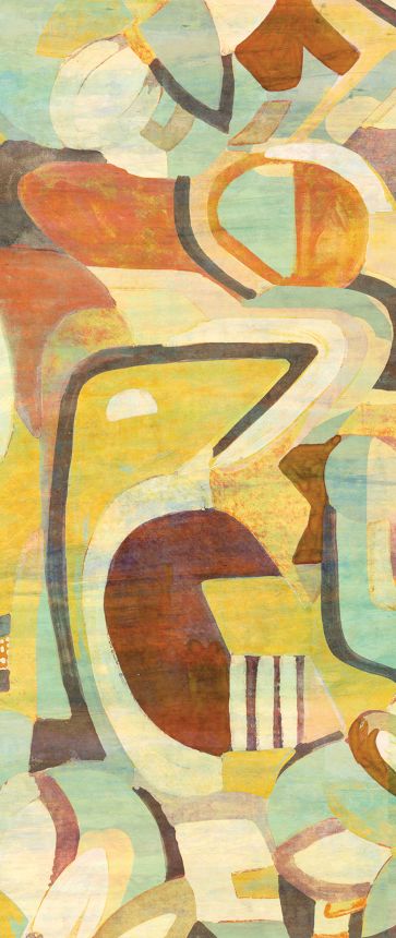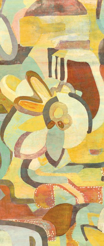 Grafická vliesová obrazová tapeta na zeď, odstíny hnědé, oranžové, zelené a žluté. Foto interiéru je pouze ilustrační Pro větší šířku lze kombinovat s fototapetami DG3WAR1031 a DG3WAR1032 - viz foto