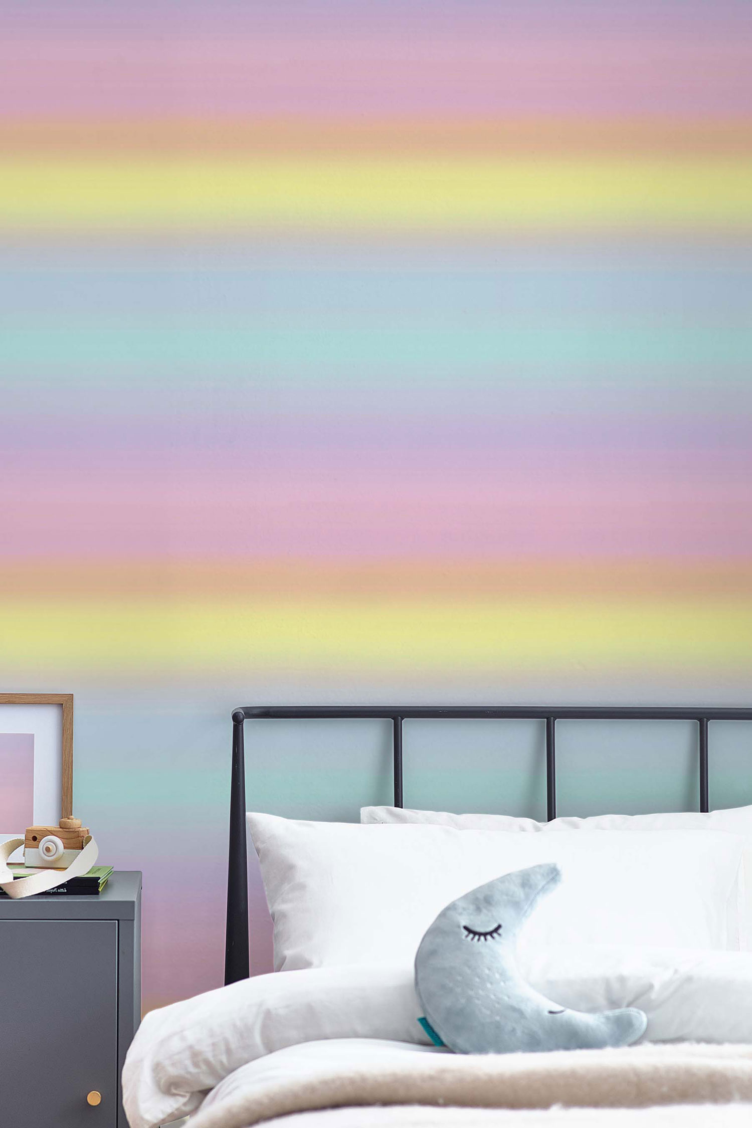 Hladká vliesová tapeta na zeď, duhové barvy.