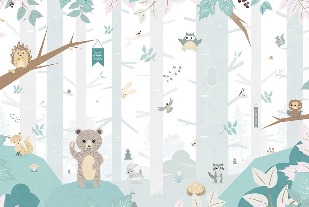 Vliesová, obrazová tapeta pro děti - les a zvířátka. 9ks