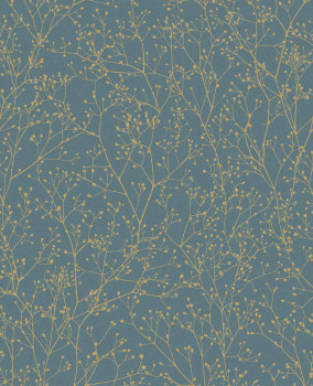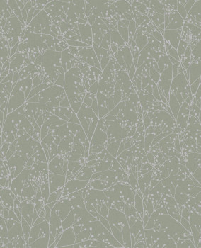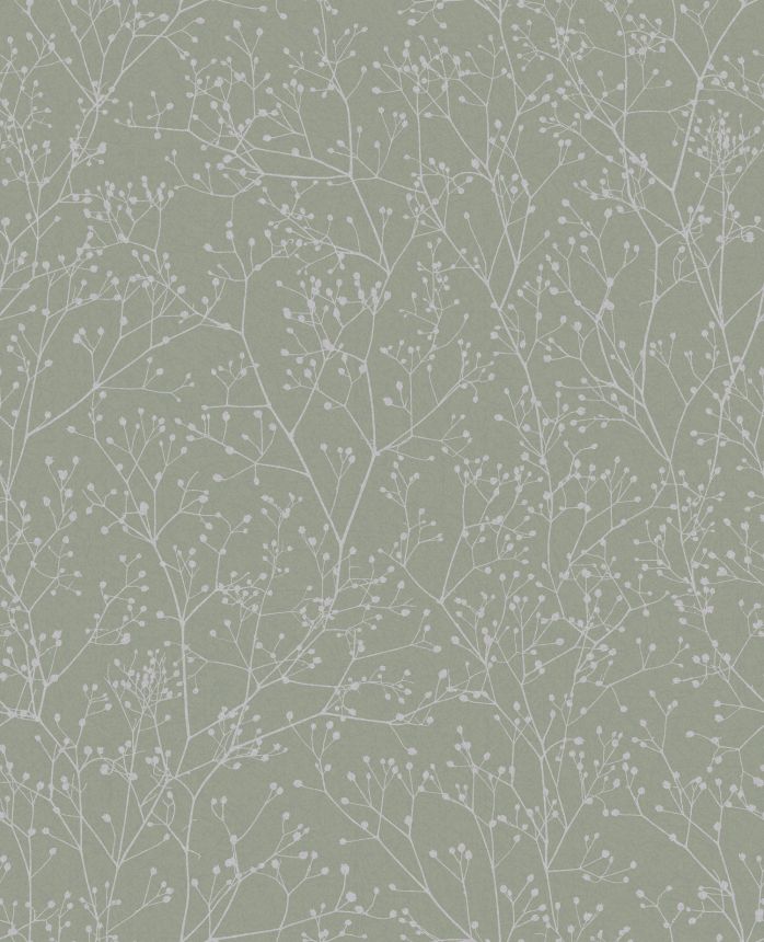 Jarně zelená vliesová tapeta na zeď, motiv stříbrných drobných větviček šateru.