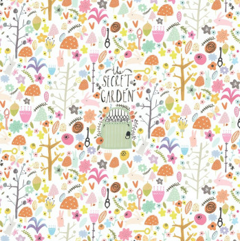 Vliesová, dětská obrazová tapeta- zahrada, květiny, stromy, zvířátka. 6ks