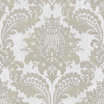 Šedo-stříbrná vliesová tapeta na zeď, damaškový zámecký vzor.