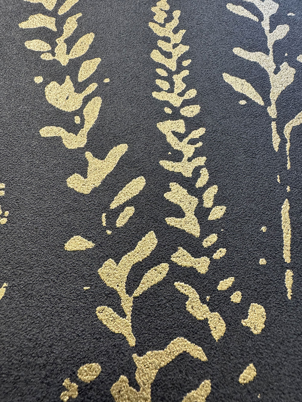 Černá vliesová tapeta s vinylovým povrchem, motiv zlatých lučních trav.