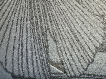 Bílá vliesová tapeta s vinylovým povrchem, motivy šedo-stříbrných  a béžových listů Ginkga.