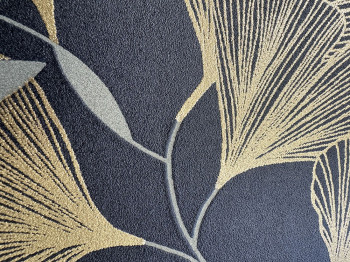 Zelená vliesová tapeta s vinylovým povrchem, motivy zlatých listů Ginkga.