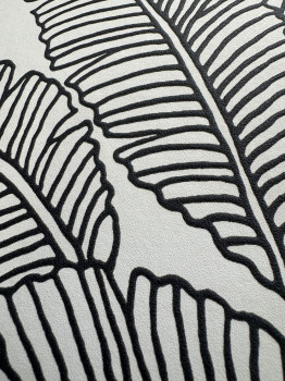 Černo-bílá vliesová tapeta na zeď, listy, A66402, Vavex 2025