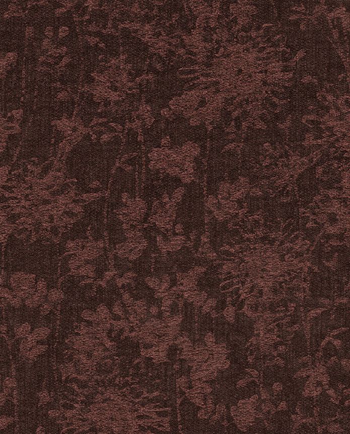 Vínová vliesová tapeta s vinylovým povrchem, motivy květin, imitace hrubé rustikální textilie.