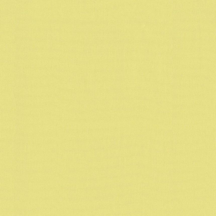 Vlisová, jasně žlutá tapeta s látkovou strukturou.