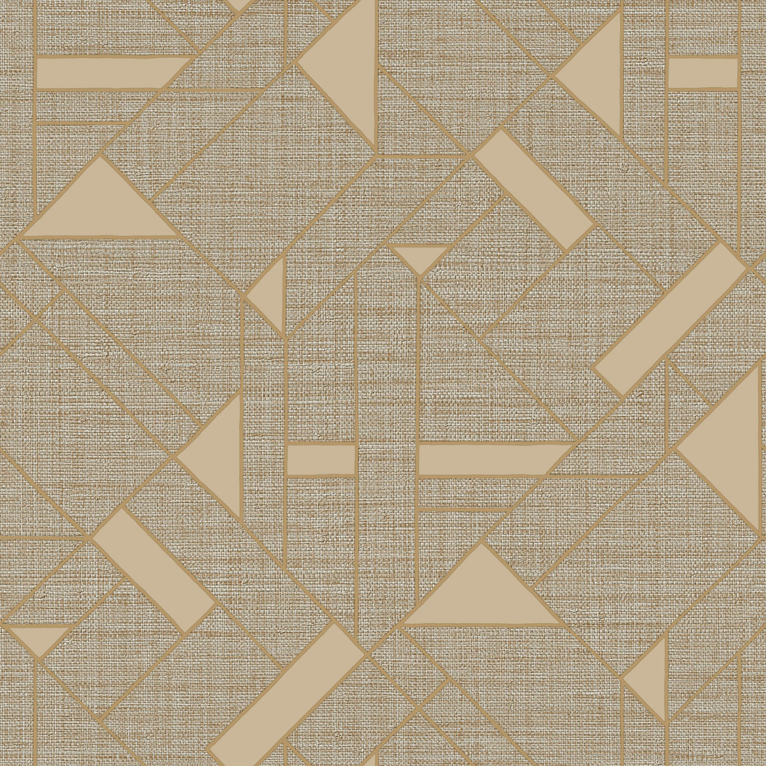 Luxusní vliesová tapeta s vinylovým povrchem, béžové geometrické vzory, látková textura, šedo-hnědý pololesk.