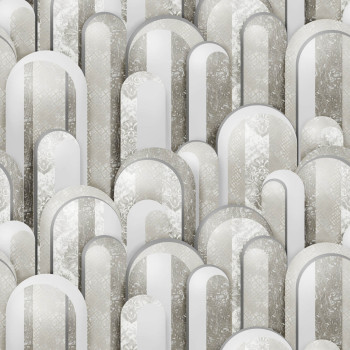 Luxusní strukturovaná vliesová tapeta s vinylovým povrchem - geometrické vzory - šedo-stříbrné arkády.