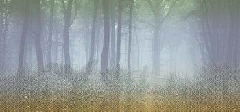 Netradiční spojení geometrických obrazců a přírodní scenérie. Vliesová obrazová tapeta.