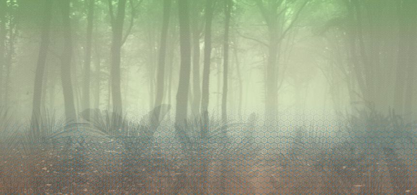 Netradiční spojení geometrických obrazců a přírodní scenérie. Vliesová obrazová tapeta.