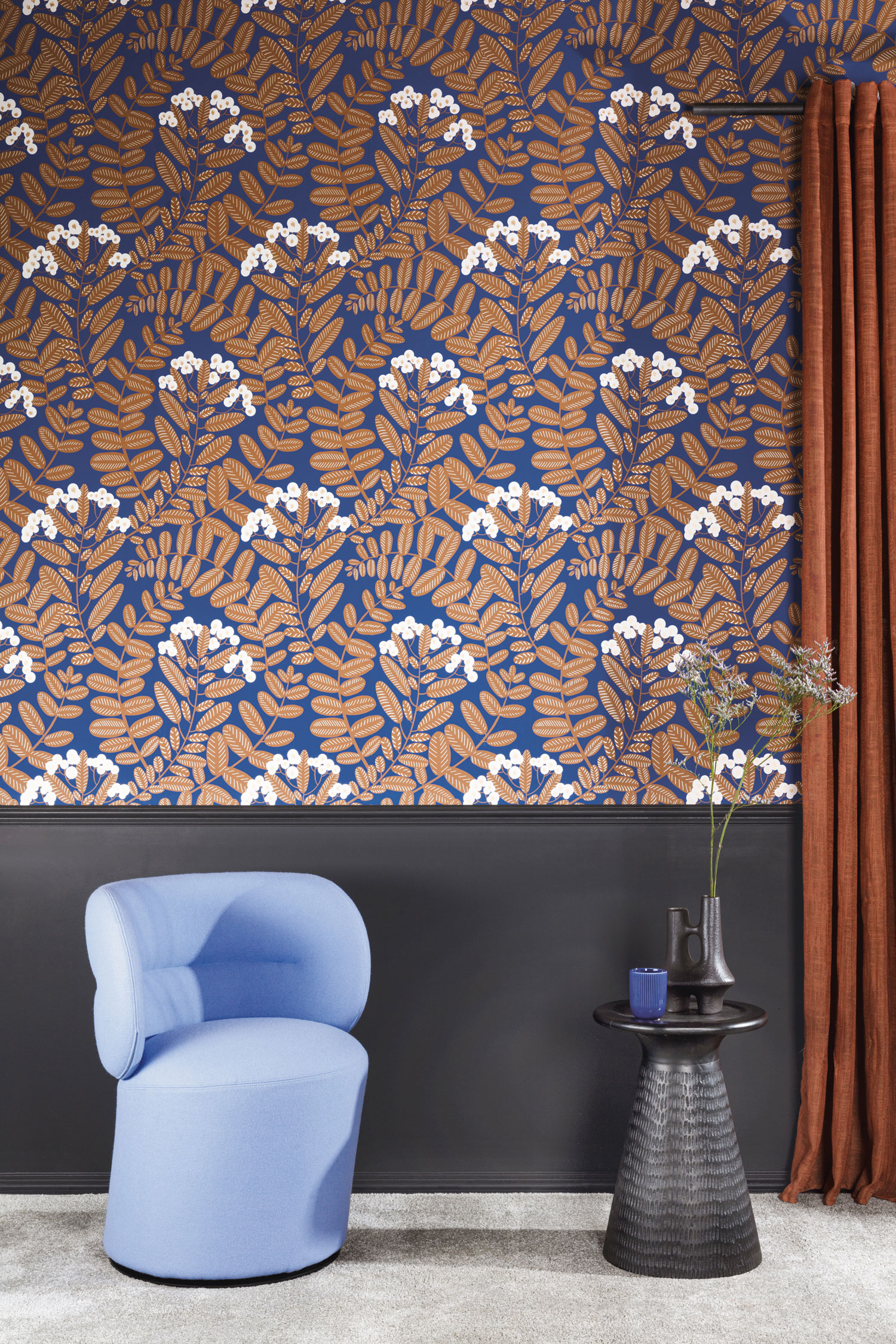 Modrá vliesová tapeta na zeď, hnědé listy, YSA002, Mysa, Khroma by Masuree