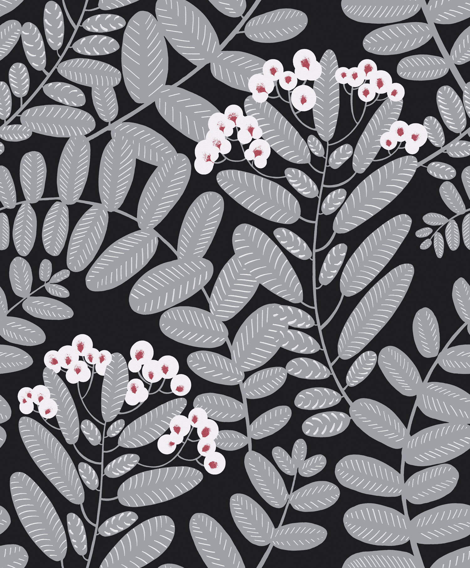 Černá vliesová tapeta na zeď, šedé listy, YSA003, Mysa, Khroma by Masuree