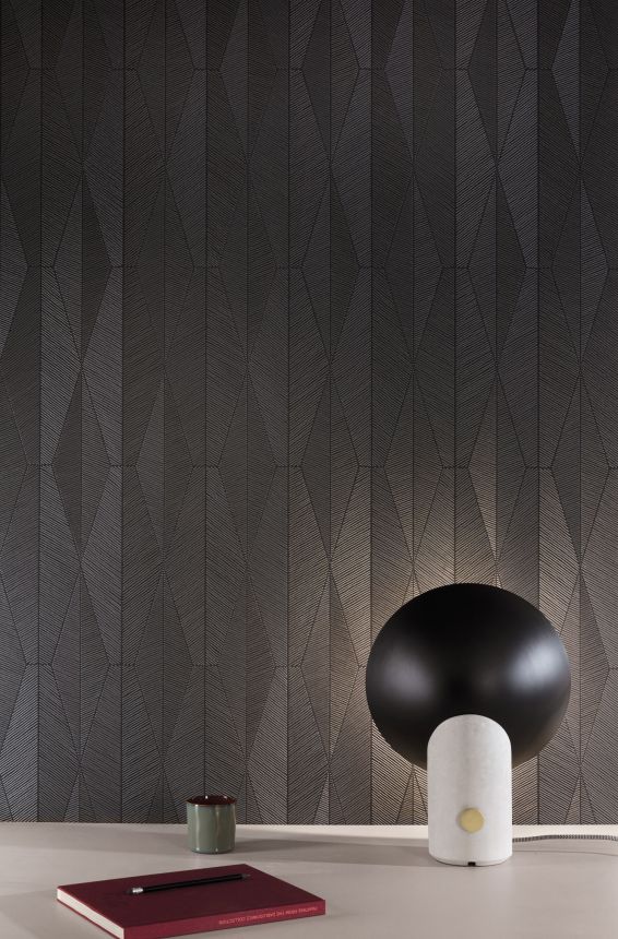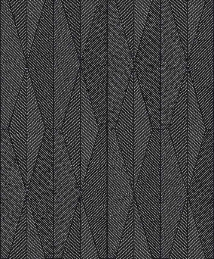 Jemně plastická černá vliesová tapeta na zeď, motivy šedých listů - matné s pololesklými detaily.