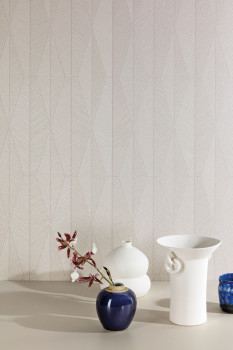 Šedo - béžová vliesová tapeta na zeď, plastický geometrický vzor.