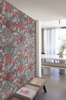 Jemně plastická vliesová fototapeta na zeď, motivy rostlin, listů. Tapeta má návazný vzor, pro větší šířku stačí dokoupit další kus.