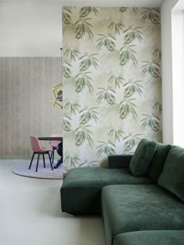 Dejte stěnám tvář tapetou s neotřelým originálním designem. Exkluzivní tapeta s netradičním motivy částečně rozostřených palmových listů v teplých odstínech zelené a šedé.