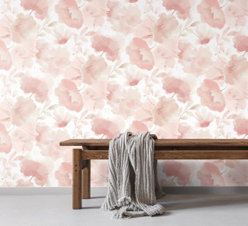 Bílo-růžová květinová vliesová tapeta na zeď, efekt malby akvarelem.