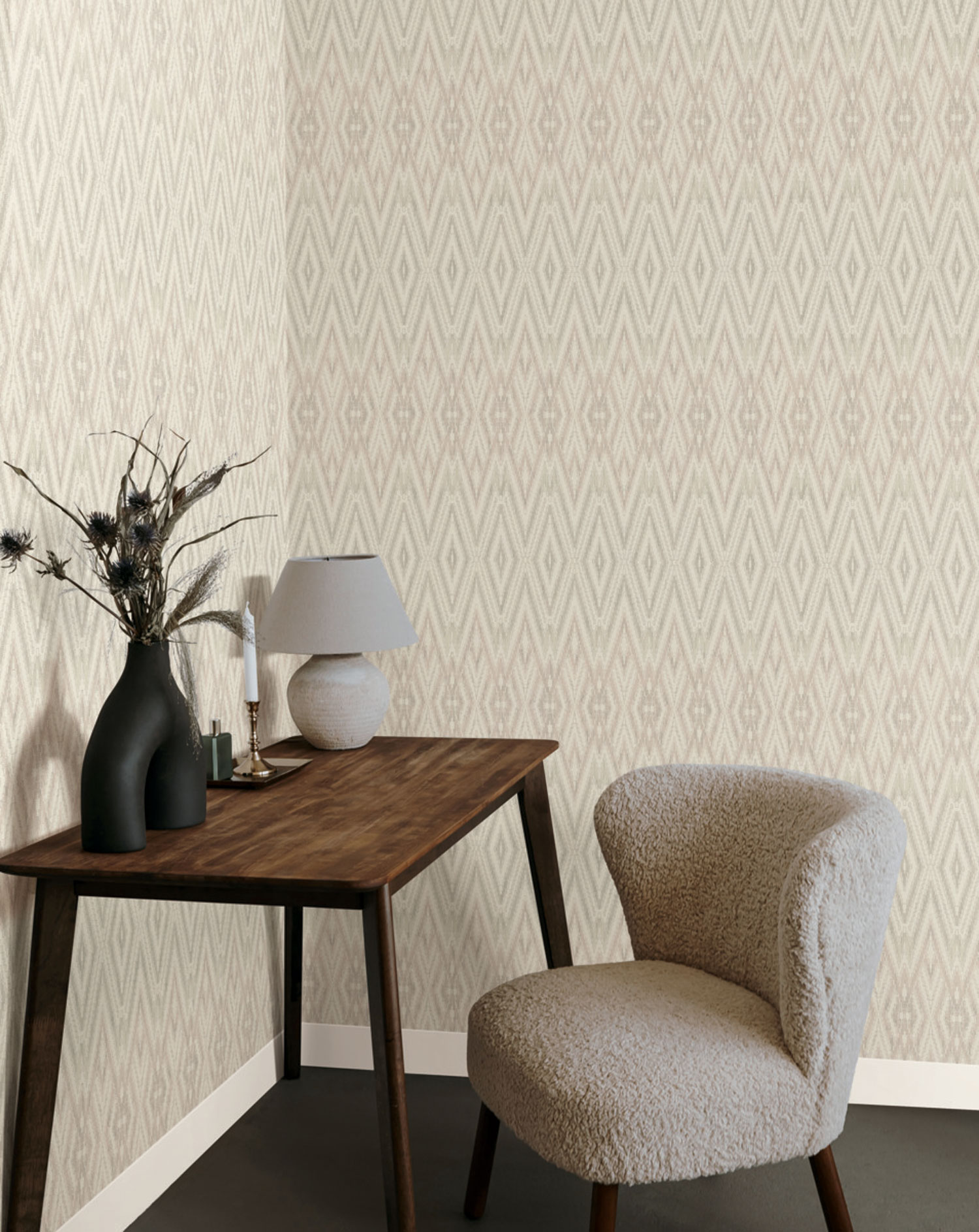Béžovo-růžová vliesová tapeta na zeď, geometrický vzor.