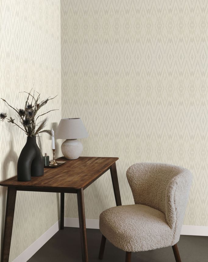 Šedo-béžová vliesová tapeta na zeď, geometrický vzor.