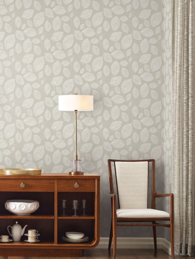Hnědá metalická vliesová tapeta s listy, EV3922, Candice Olson Casual Elegance, York