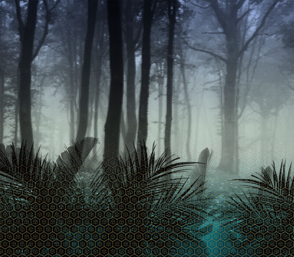 Netradiční spojení geometrických obrazců a přírodní scenérie. Vliesová obrazová tapeta.