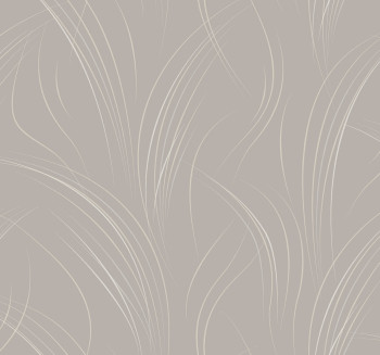 Béžová vliesová tapeta na zeď, nádech do růžové, bílé, béžové a šedé linie.