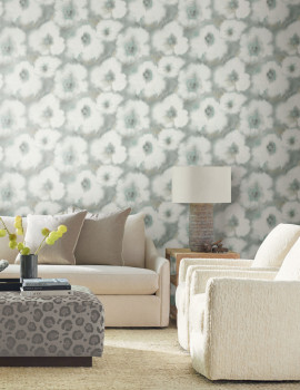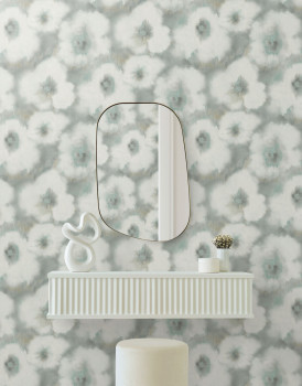 Šedo-zelená květinová vliesová tapeta na zeď, efekt malby akvarelem na plátně.
