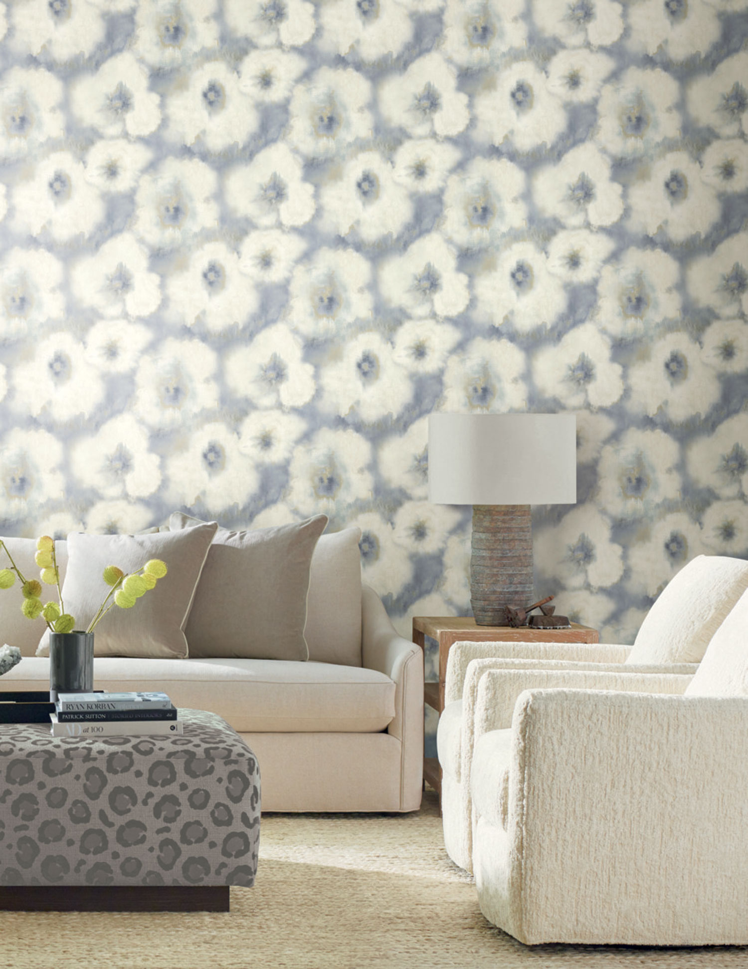 Modro-béžová květinová vliesová tapeta na zeď, efekt malby akvarelem na plátně.