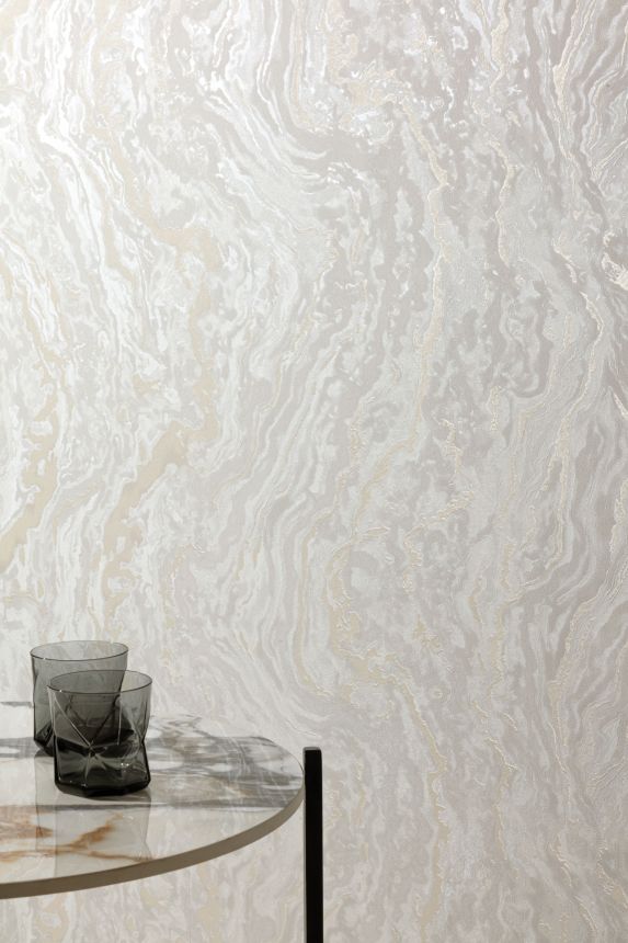 Vliesová mramorovaná tapeta s vinylovým povrchem, odstíny bílé a perlové. Foto interiéru je pouze ilustrační - odlišné barvy.