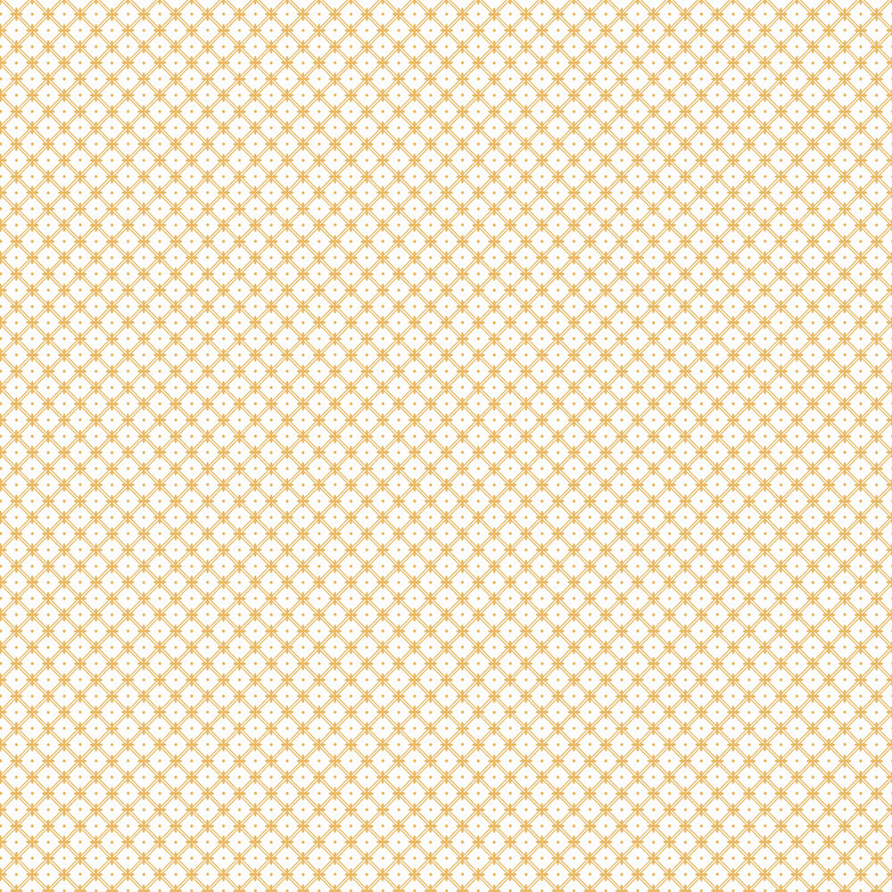 Hladká bílá vliesová tapeta na zeď, motiv okrově žluté mřížky.