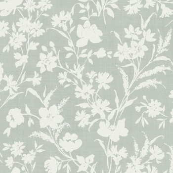 Zelená vliesová tapeta na zeď, bílé květiny.