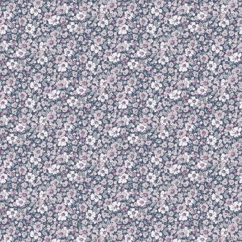 Hladká vliesová tapeta na zeď, motiv květin v odstínech modré, šedé a okrové.