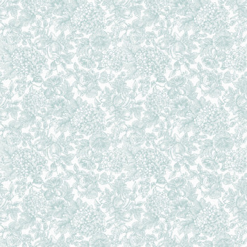 Hladká bílo-zelená vliesová tapeta na zeď, motiv květin.