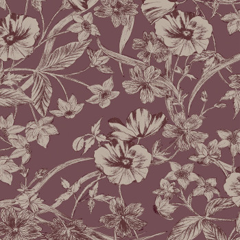 Matná ostružinová cliesová tapeta na zeď, metalický zlatý květinový vzor.