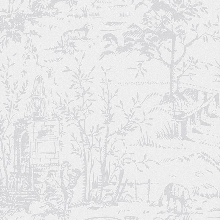 Bílo-šedá vliesová tapeta na zeď, náznak látkové textury.