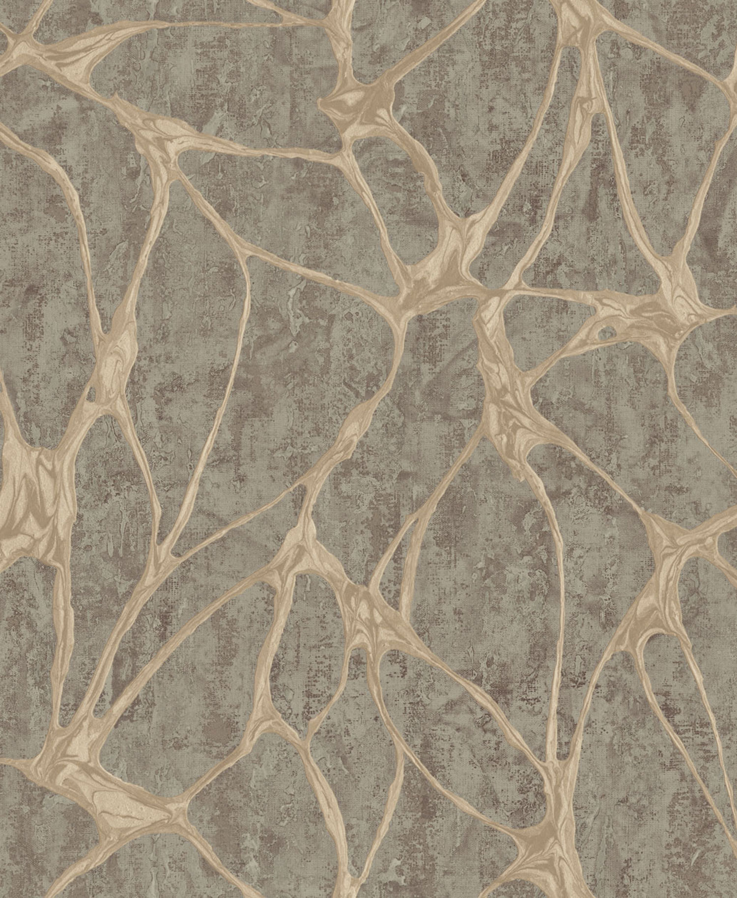 Luxusní vliesová tapeta na zeď v šedo-hnědé barvě s výrazným mramorovým vzorem zlaté barvy na podkladě imitující štukovou omítku.