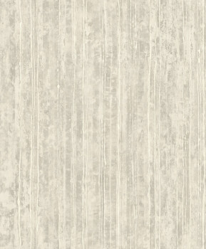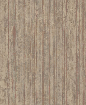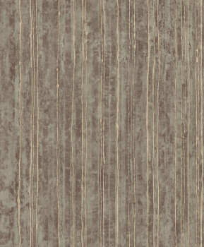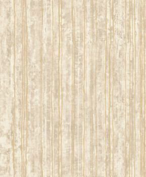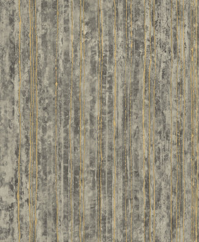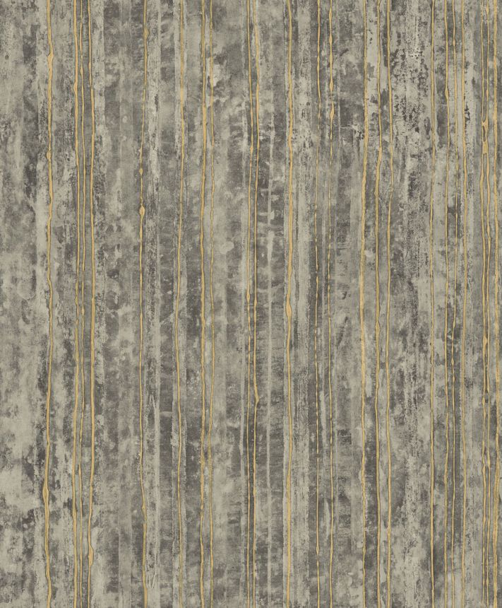 Luxusní šedá vliesová tapeta s plastickými zlatými pruhy na podkladě imitující štukovou omítku.
